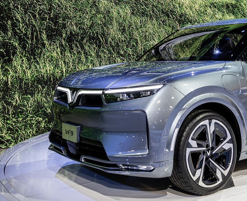 Các chi tiết dập nổi lớn trên nắp ca-pô đem lại vẻ ngoài mạnh mẽ cho mẫu xe VF9. Cản trước và hốc gió của VF9 cũng được nhà sản xuất thiết kế nhằm tăng thêm sự thanh thoát, lại vừa cải thiện tính năng khí động học của xe.